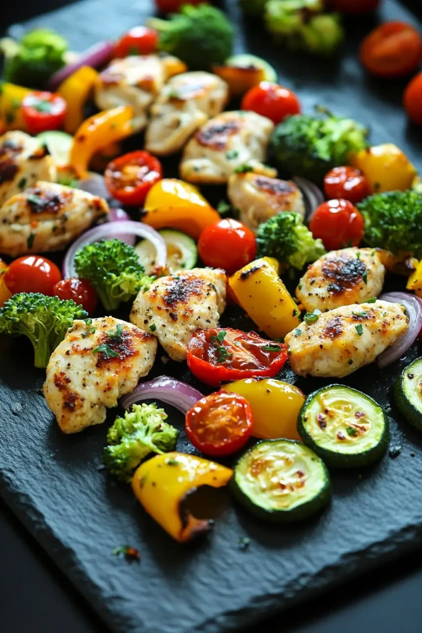 A quick and easy one-pan meal featuring juicy chicken tenders roasted alongside a colorful mix of vegetables, seasoned to perfection for a healthy and delicious dinner.